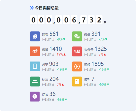 对海量网络舆论进行采集分析,并识别其中的关键奥情信息,及时通知到相关人员,对于企业关注的重点信息,及时通知到相关人员,实现实时响应,头企业形象舆论导向及收集网友意见提供一站式信息化平台,时刻关注企业的形象,洞察文化的系统概貌和整体水平,也可以评估企业在市场竞争中的真正实力。