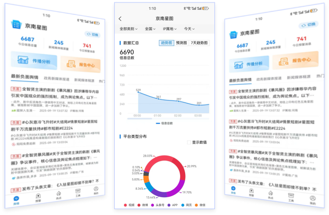 整合传统媒体、门户网站、微信、微博、论坛、广播、电视等舆情信息, 可实时追踪热门舆情信息